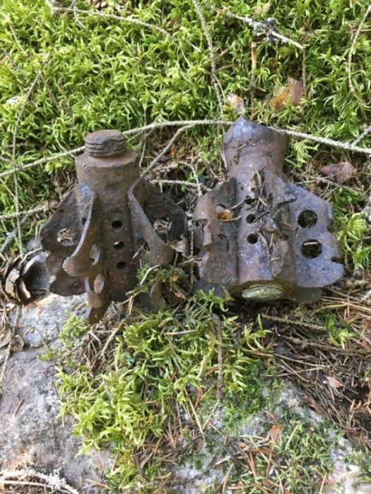 “Aletas de granada de mortero. Explotó o se desatornilló la propia carcasa. Debería ser seguro, pero no puedo ver que el cebador aún esté activo”.