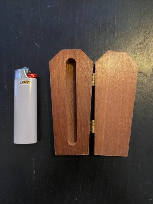 “Es un regalo de broma y ayuda para dejar de fumar. El fumador coloca un cigarrillo de ’emergencia’ adentro para llevarlo consigo mientras intenta dejar de fumar, y cada vez que se siente tentado a sacarlo ve un claro recordatorio de una gran razón por la que debe dejar de hacerlo. Básicamente, para ayudar a mantener la determinación de dejar de fumar”.